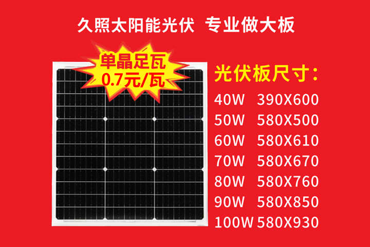 本廠位于中山市古鎮(zhèn)海州大華工業(yè)區(qū),是目前行業(yè)里率先使用光伏電站級(jí)別單晶電池片的廠家,從40瓦到100瓦光伏板全部現(xiàn)貨發(fā)售,久照品牌為注冊(cè)商標(biāo),質(zhì)量保證!我們是專業(yè)的現(xiàn)貨配送工廠,把庫存,場(chǎng)地壓力交給我們!減輕您的資金壓力...!